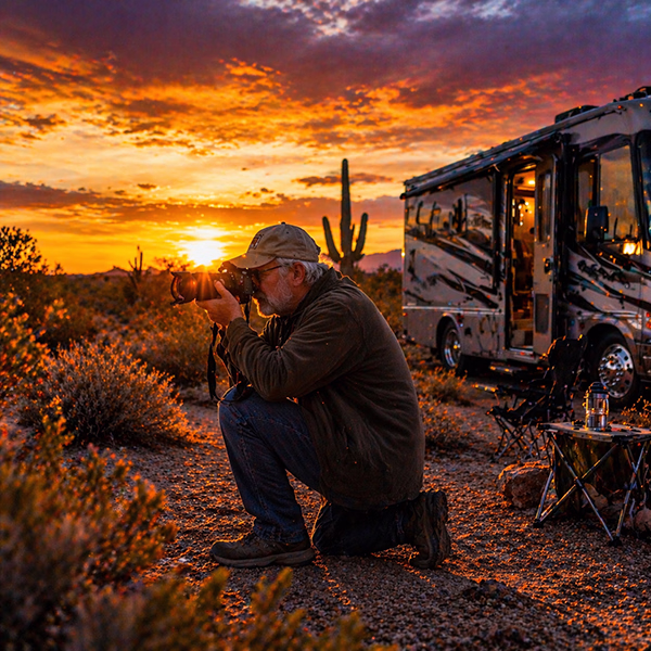 - Golden hour is everything: The hour after sunrise and the hour before sunset bathe everything in warm, soft, directional light. This is when landscapes, portraits, and even your RV look their absolute best.